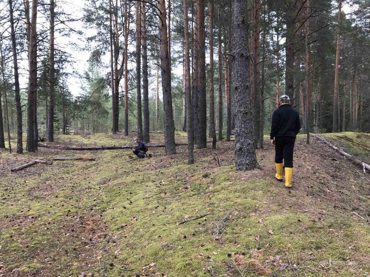 Наступили выходные, и я с братом и папой поехали на это место. Приехав на место, где примерно находилась деревня и разложив металлоискатели, начали бродить по лесу, я с Simplex-ом, а брат с Quest-ом. Прошло полчаса, а из находок один мусор и никаких признаков исчезнувшей деревни. Не зная куда идти, я решил направиться в сторону речки. У речки была низина и местность была немного заболоченной. Походил в этом месте и за 15 минут ни одного сигнала, металлоискатель не издал ни звука.