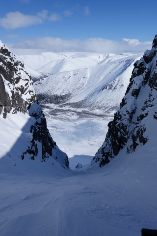 - "Мальчуковая щель" называется, - ткнул паркой Юра в склон горы. Здесь, в Хибинах, кулуары звали щелями. И правда - узкие вверху, с отвесными стенками и хорошим уклоном, они были похожи (особенно издалека) на щели. – Там дроп метра три на самом заходе…