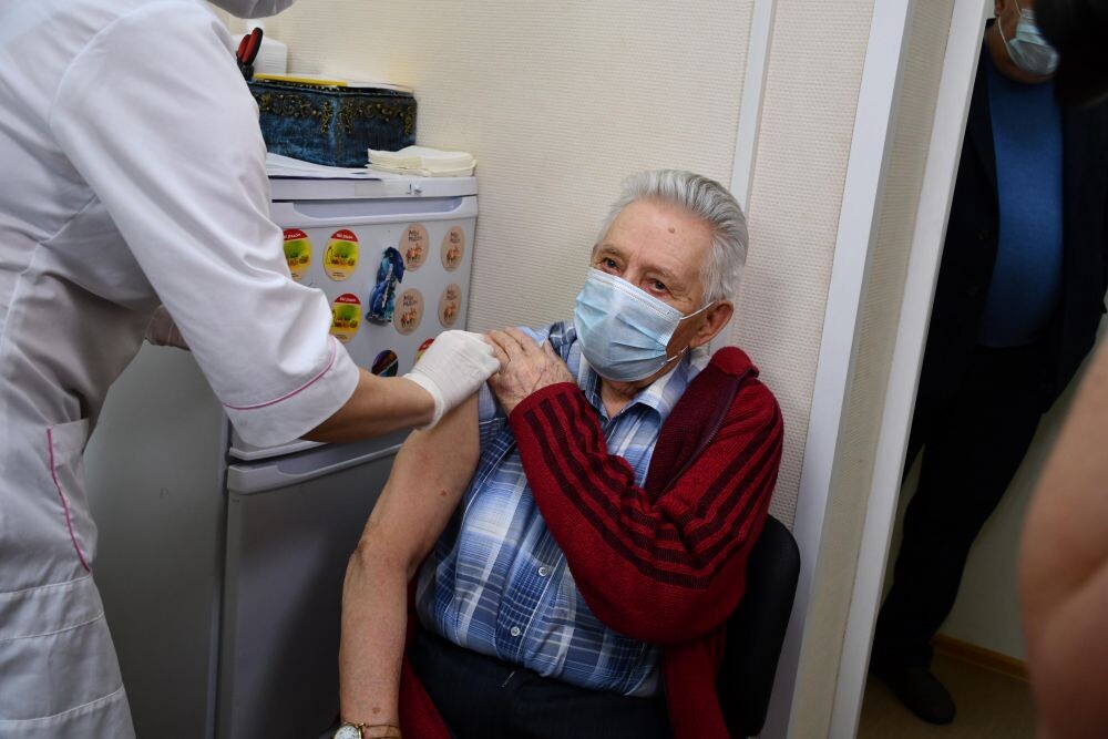 Фронтовик Дмитрий Константинович Гончаров пришёл в центр «Оптимист» исполнить свой гражданский долг: от прививочной кампании сейчас зависит судьба страны и мира. Если молодёжь прививаться не спешит, а верит только в сомнительную удачу и иммунитет, приходится за неё отдуваться тем, кто находится в группе риска по тяжёлому течению