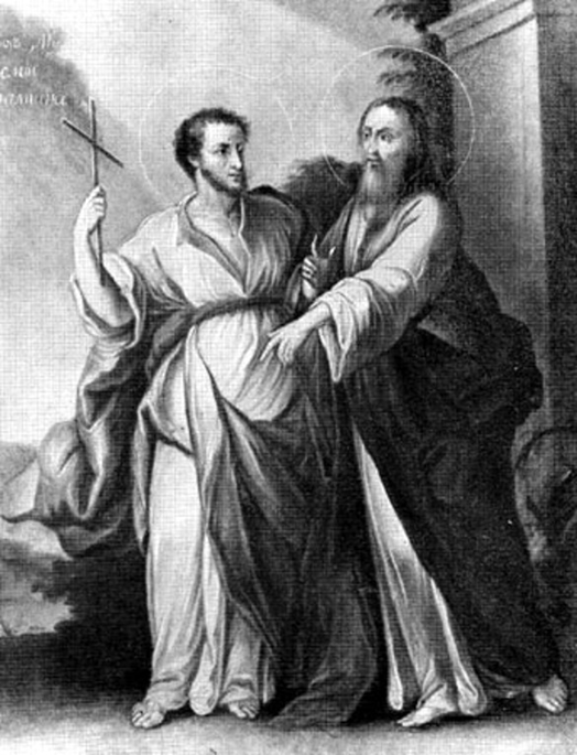 А.С. Пушкин и В.И. Даль в виде святых Косьмы и Дамиана.