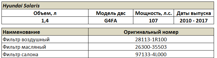 Сегодня поделюсь своим мнением по поводу выбора фильтров для Технического обслуживания автомобиля Hyundai Solaris c объемом двигателя 1,4.