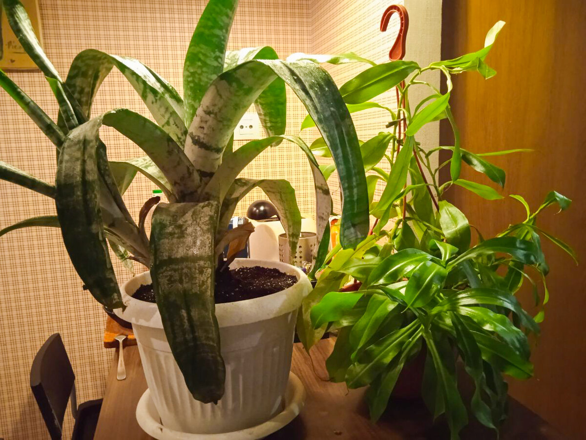 Тот, что слева-эхмея, справа-непентес. Эхмея в принципе не особо прихотливая, цветет очень красиво. Будем надеется, что у нас тоже будет цветок. Непентес прихотливый, тропический цветок, за ним нужно следить, не заливать водой, но и не оставлять сухим.
