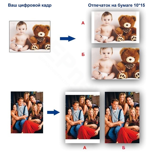Наиболее распространенный формат бумаги для печати — 10х15 см. Имеет соотношение сторон 2:3. А формат снимков большинства современных цифровых фотоаппаратов и телефонов – 3:4. Поэтому, когда мы пытаемся напечатать «цифровой» снимок на бумаге 10х15, возможны два варианта: