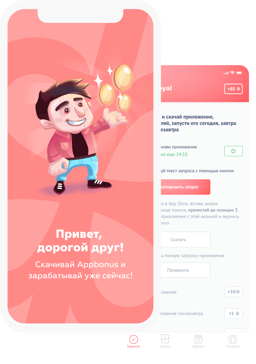 Знали ли вы что просто скачивая приложения можно зарабатывать до 1000 рублей в день ? Ты можешь пригласить в Appbonus своих друзей, просто скажи им свой промокод и получи 20% от их дохода пожизненно, а твои друзья получат бонусные 3р за регистрацию в сервисе! А ещё у нас есть система рангов для пользователей, которые влияют на бонусный доход. Также есть бонусы за активность и подключение