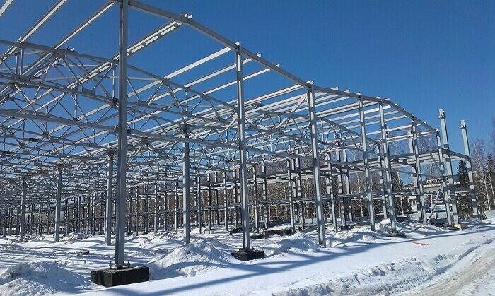 Работы могут проводиться в любое время года, так как температура воздуха на процесс не влияет. Высокая технологичность операций (болтовое соединение, сварка) позволяет существенно сократить сроки проведения монтажных работ.