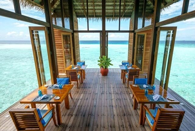 Самый красивый ресторан мира (New York Daily News, 2014) и он же лучший ресторан года (World Luxury Restaurant Awards, 2017) находится у острова Рангали, на 5-метровой глубине. Сосредоточиться на еде здесь невероятно трудно, ведь столики расположены под прозрачным сферическим куполом, открывающим шикарный обзор подводных глубин. Прямо над головами гостей проплывают пестрые рыбки, парящие скаты и даже рифовые акулы – ужин в такой атмосфере похож на фантастический сон!