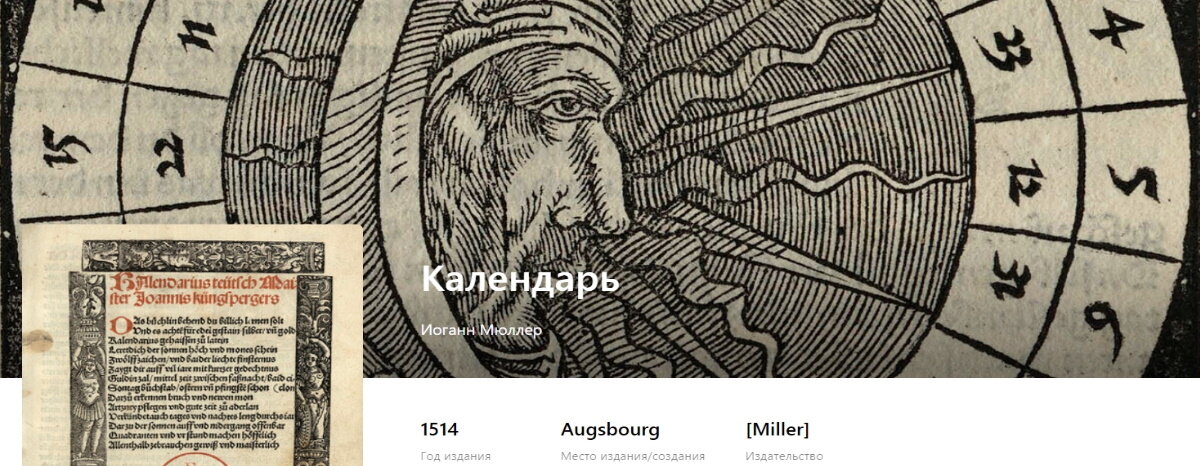 Книжный памятник относится к тематическому разделу «Палеотипы». Он оцифрован в рамках Национального проекта «Культура» и вместе с «Календарем» Иоганна Мюллера выложен на портале НЭБ.