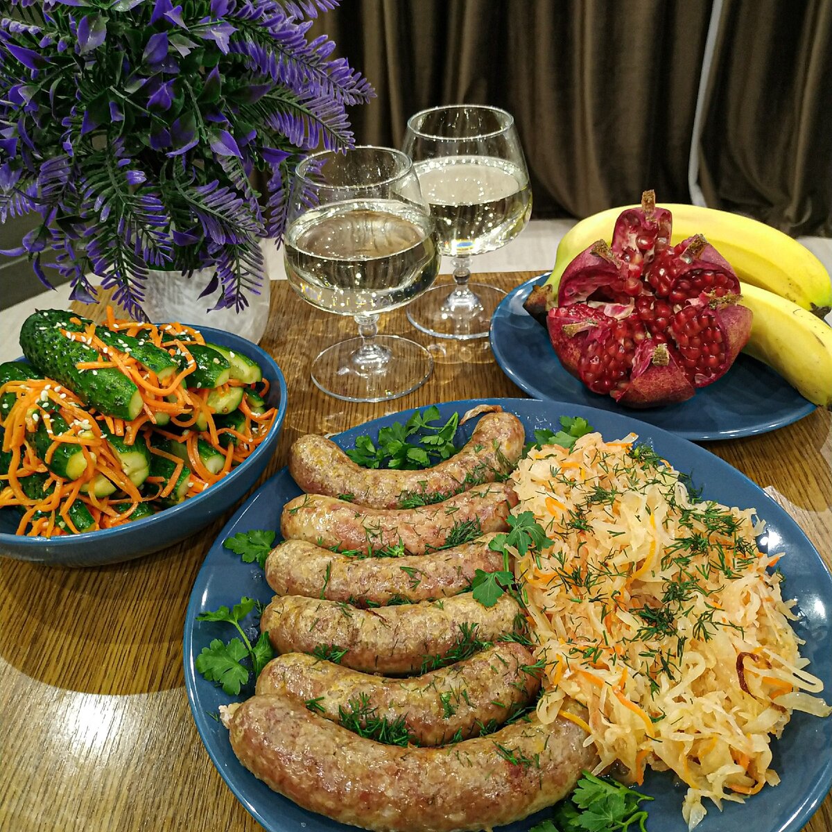 Сегодня сильно мудрить не стала с ужином. После рабочего дня хочется приготовить ужин "по быстрому". В меню были колбаски, томленная капуста и огурцы по корейски, точно не знаю название, если знаете, пишите в комментариях.