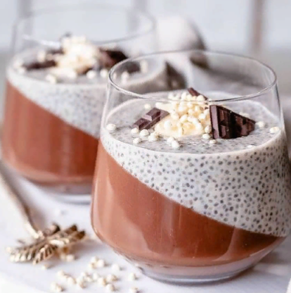 Двойной шоколадный пудинг с ванильным пудингом чиа. Такой вкусный, сливочный, богатый вкусом.