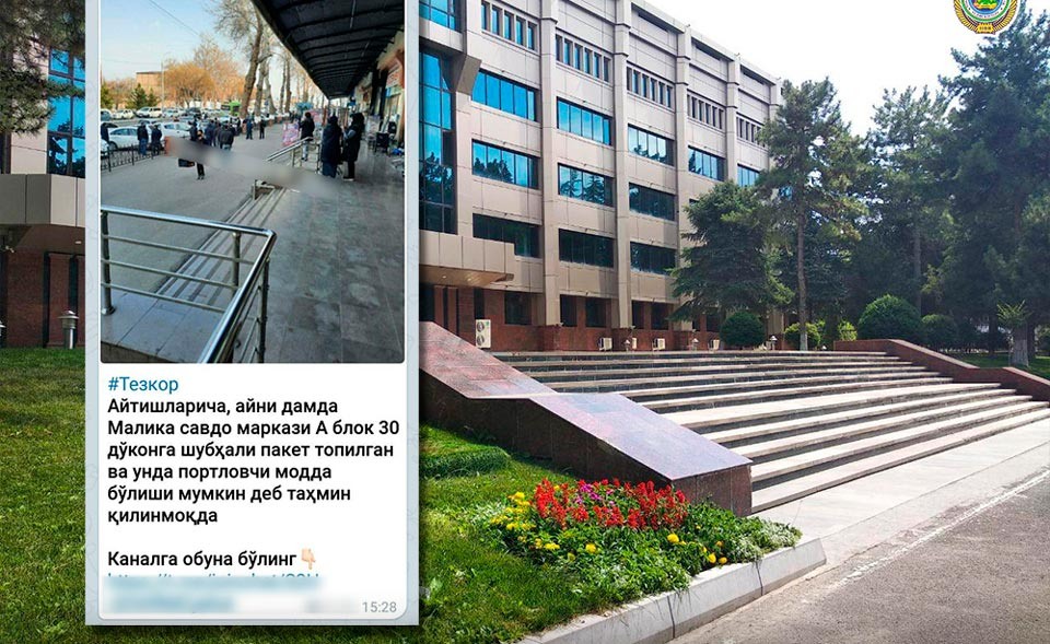 "В ходе проведенных оперативных мероприятий установлено, что сумка была забыта в вышеуказанном месте 18-летним Ж.К., который трудится наемным рабочим на строительном объекте в Юнусабадском районе. В ходе беседы он сообщил, что приехал на территорию торгового комплекса с целью починить свой телефон. Сумка, содержавшая вещи домашнего обихода, была оставлена им возле входа в магазин по причине ее тяжести, на время. Молодой человек не ожидал, что это может напугать кого-либо и вызвать резонанс", – заключили в ГУВД.