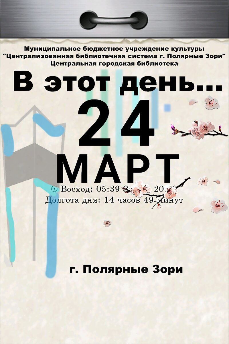 24 марта 1996 года – отдел культуры администрации г. Полярные Зори объявил Неделю музыки и книги, в рамках Международной недели музыки и Всероссийской недели детской книги.