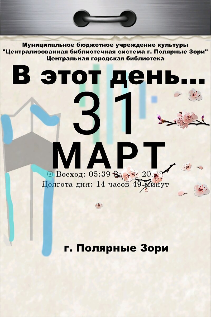 31 марта 2005 года – вышел Закон Мурманской области от 12.04.2005 N 615–01–ЗМО «Об утверждении границ административно-территориальной единицы город Полярные Зори с подведомственной территорией».