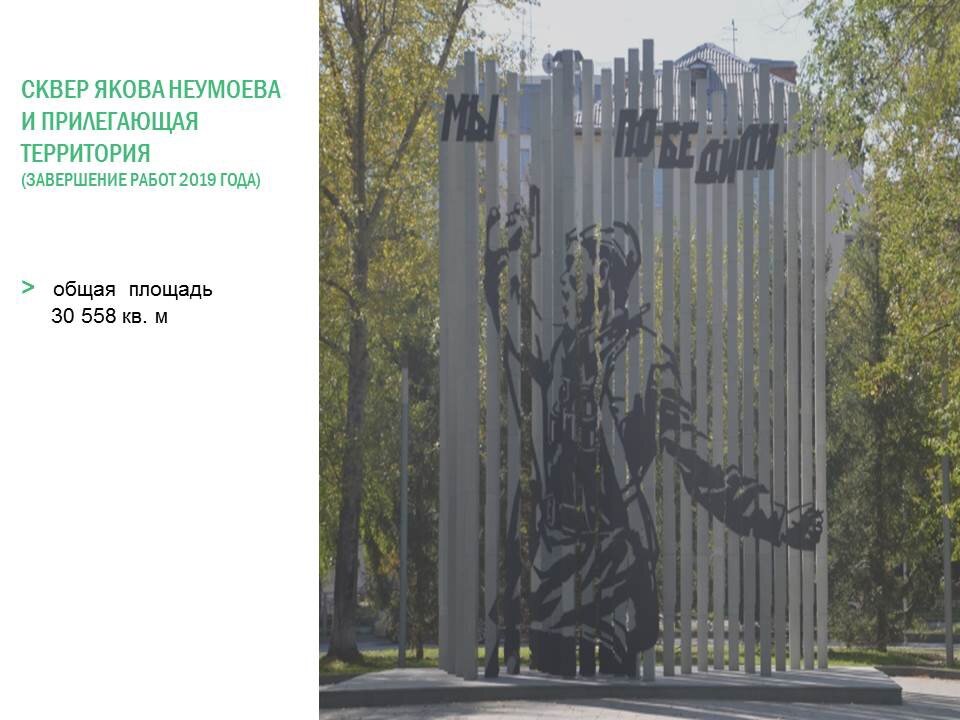 Всего в 2020 году на территории нашего города выполнены работы по благоустройству четырёх озелененных территорий и восьми озеленённых зон общественных пространств (так называемых зеленых уголков). Из них в рамках реализации федерального проекта благоустроена одна озелененная территория и три зелёных уголка. Например, в 2020 году завершены работы по благоустройству сквера Якова Неумоева, выполнен второй этап благоустройства озелененной территории по ул. Вьюжной, первый этап благоустройства Заречного парка, полностью благоустроен Никольский сквер по ул. Вознесенской – ул. Родниковой, а также зеленые уголки по адресам: ул. Республики, 162; пер. Добрый – ул. Каспийская – ул. И. Крылова; ул. Мельникайте (ул. Инженерная, 72).