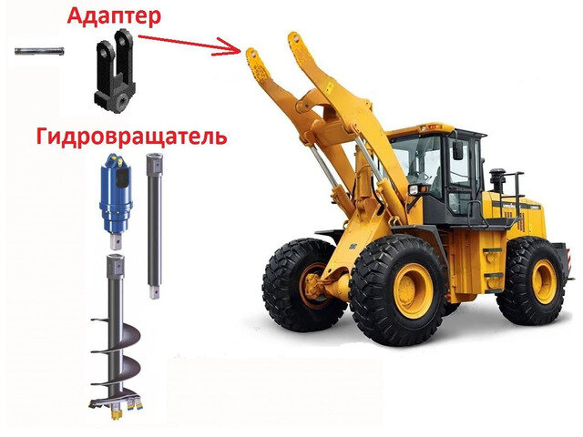 Навешивание бурового оборудования -на одну сторону стрелы погрузчика (через спец. адаптер) или на адаптер-копию погрузочного ковша (более сложное исполнение).