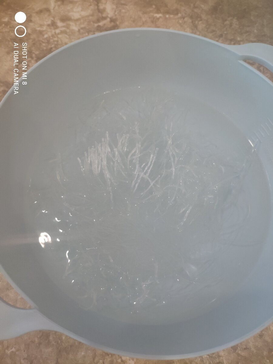 На один пучок фунчозы достаточно будет грамм 300 различных морепродуктов. Немного крабового мяса.