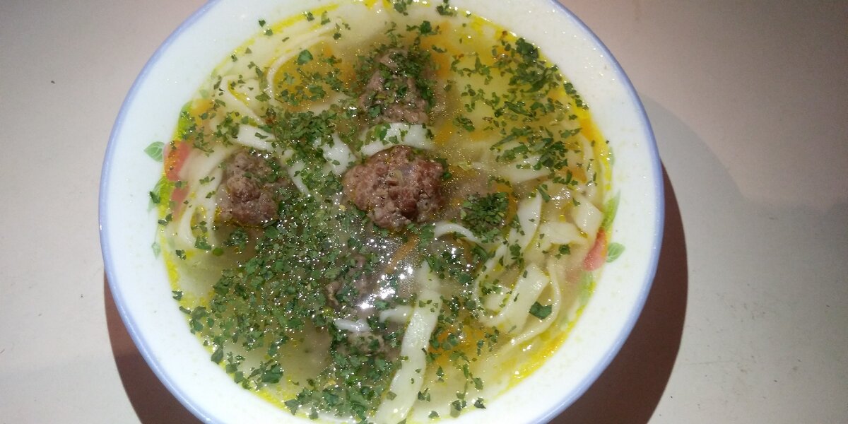 Приготовление домашней лапши и фрикаделек можно посмотреть здесь)