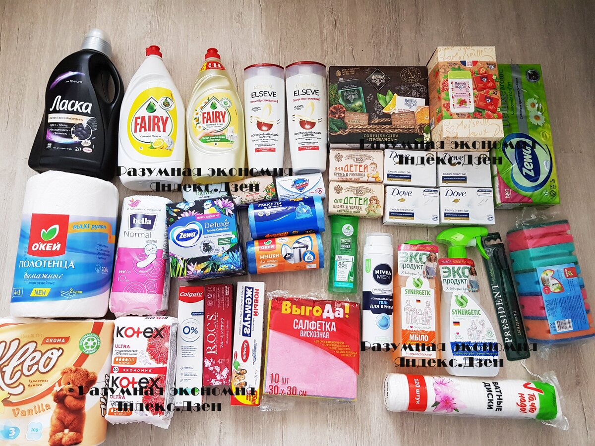 Fairy всегда пригодится в хозяйстве, хотя у меня одна бутылка иногда и за год не заканчивается. С ромашкой я собиралась отнести родителям, но вечно забывала. Губки мои любимые перестали выпускать, я покупала в Ленте их марку. Сейчас пользуюсь такими из Окея, не нравятся - буду искать дальше. Я люблю большие губки за адекватные деньги) Мусор мы выносим каждый день в овощном пакетике, редко пользуемся такими специальными пакетами, так что лежат пока в запасах. На год хватит, а то и больше. Салфетки вискозные я не очень люблю, но ветоши дома тоже нет, так что покупаем любые не глядя.