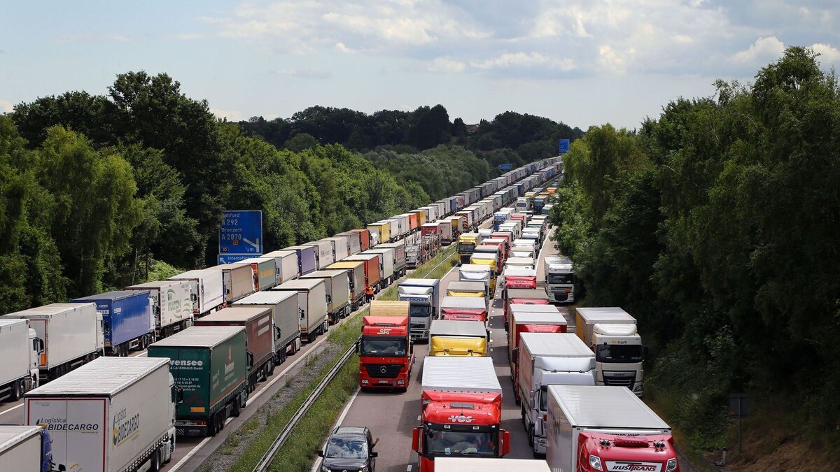 Скопление большегрузов находится на границе с Литвой и на других въездах в страны Евросоюза. Всего в пробке застряли около 1160 машин.