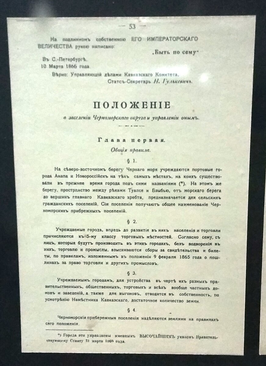 В марте 2021 г. исполняется 155 лет с момента утверждения «Положения о заселении Черноморского округа и управлением оным». Документ был подписан 10 марта 1866 г. (22 марта по н. ст.) в Санкт-Петербурге. В соответствии с дореволюционным законодательством Положение вступило в законную силу, после того как Александр II собственноручно поставил свою визу: «Быть по сему».