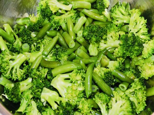 Блюдо правильного питания для легкого ужина. Надо отварить стручковую фасоль, а также 300 г соцветий брокколи — в подсоленной воде. Все смешать, добавить соль, пряные травы и потушить пять минут.