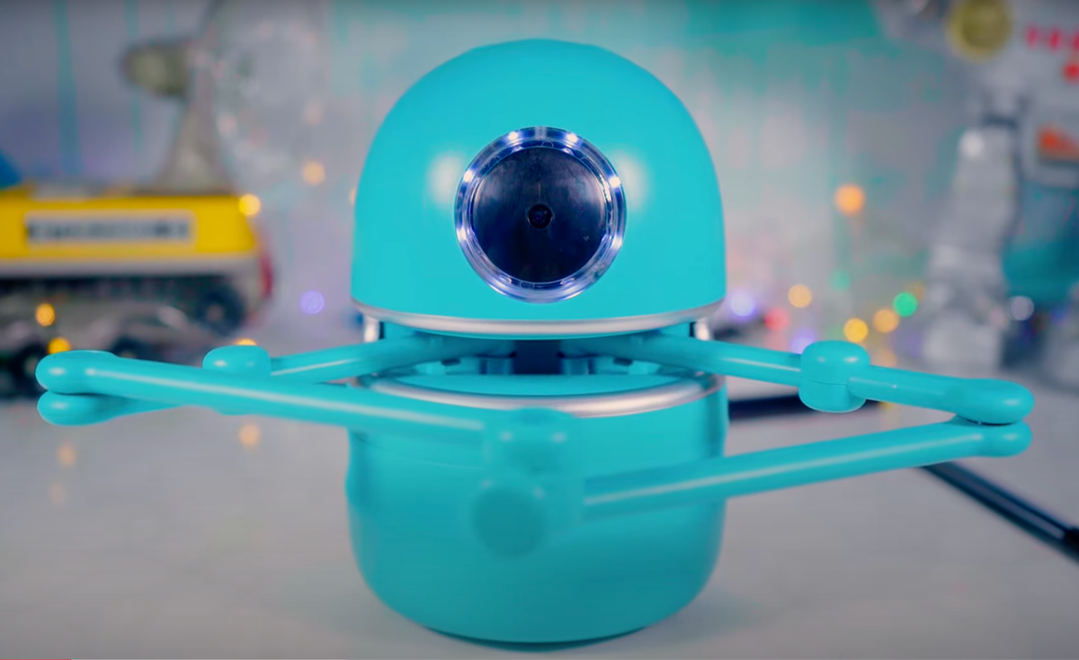 Ярко-бирюзовый цвет, необычный футуристический дизайн который напоминает собой героев мультфильмов студии pixar, в частности корпорации монстров подсветка большого глаза выступающего в роли камер и основных элементов управления лишь еще больше погружает в атмосферу мира будущего особенности строения и выемкой для рук робота создают впечатление что Quincy постоянно улыбается, а какой милый у него голос.