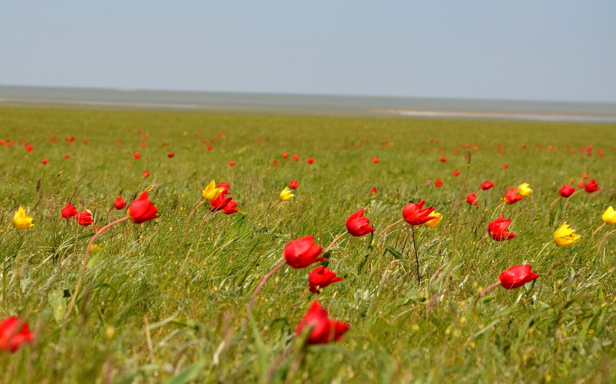 Первыми в степи распускается белый тюльпан, двухцветковый, который иногда ошибочно называют «подснежником». Затем идет очередь желтого тюльпана Бибирштейна и лишь потом распускается красный тюльпан Шренка. Реже можно встретить тюльпаны Шренка розового, лилового оттенков или даже двухцветные. А еще, поговаривают, что в степи можно встретить абсолютно черный цветок, способный исполнить любое ваше желание. Ни в коем случае нельзя его срывать или рассказывать кому-либо о его местонахождении. Нужно лишь тихонько шепнуть ему свою заветную мечту.