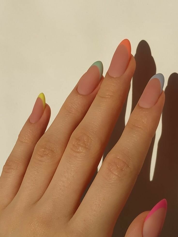 В 2021 будут актуальным будет французский маникюр разных оттенков , также разноцветное однотонное покрытие.