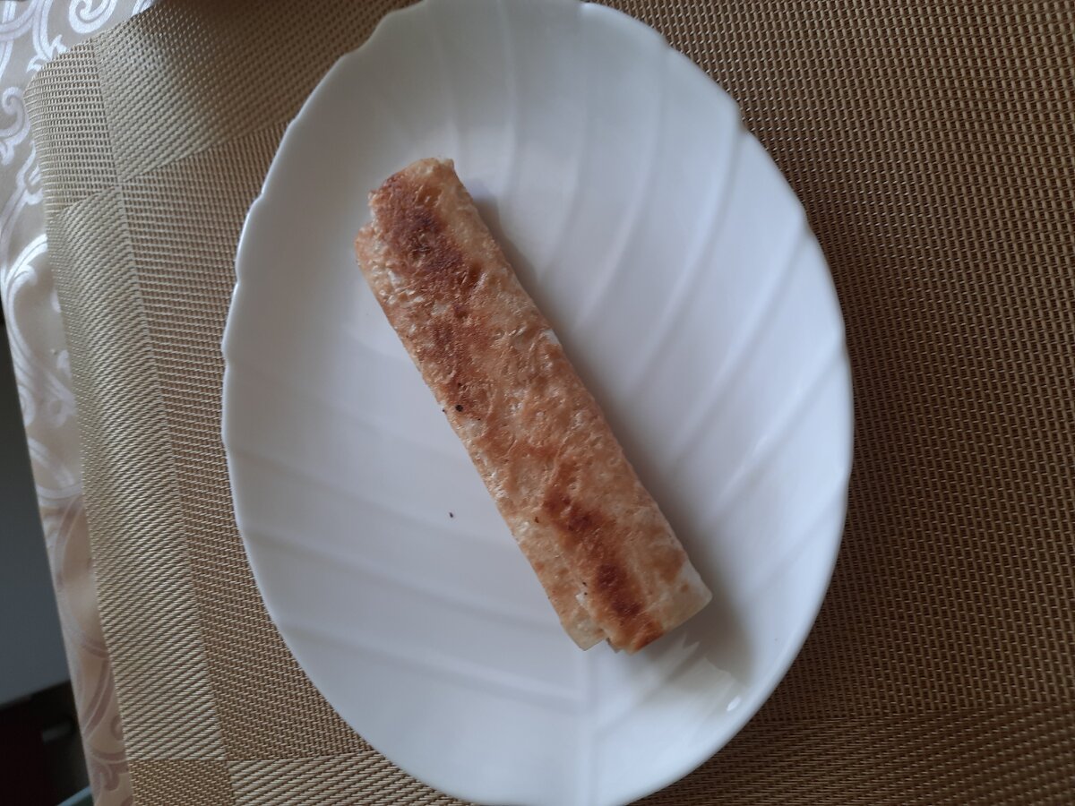 Ввкладываем начинку на один край лаваша и сворачиваем в трубочку