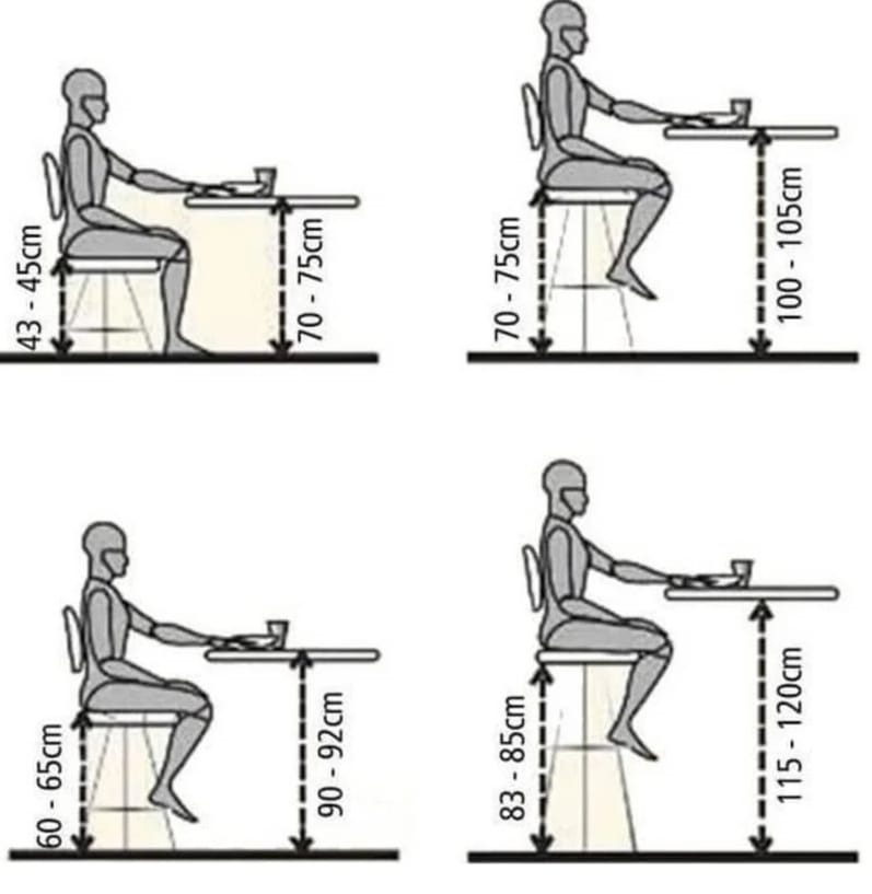 ✅по высоте оптимально считается стол 75см, сидение стула 45. Либо если и стол и стул выше - их разница не должна превышать 30 см.