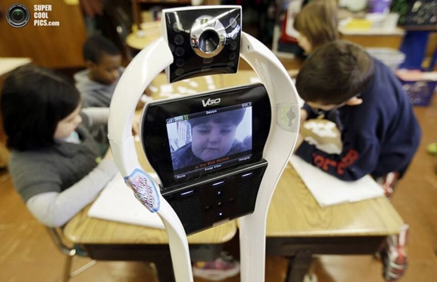 Среди учеников начальной школы «Уинчестер» в городке Уэст-Сенека, штат Нью-Йорк, США, можно встретить 120-сантиметрового белого робота . Как оказалось, техника служит своего рода посланником Девона Кэрроу (Devon Carrow) — мальчика, который не может лично посещать школу из-за серьезных проблем со здоровьем.