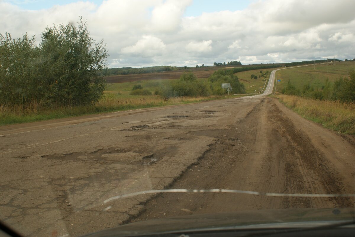 Ну вот и наступил закат. Стемнело. Мы решили поехать в гостиницу в Саратов. По навигатору было примерно 350 км. Где-то в интернете перед поездкой я читал, что дорога ужасная. Люди рекомендовали ехать не по пути навигатора, а как-то в объезд. Честно говоря, уже не помню как. Я не послушал людей и поехал по навигатору. Это была моя фатальная ошибка. Ночь. Ни единого фонаря. Машин, кафе или другой жизни нет. Изредка небольшие деревушки. Иногда обочина была ровнее дороги. Было ощущение, что еду по вспаханному полю, а не асфальту.