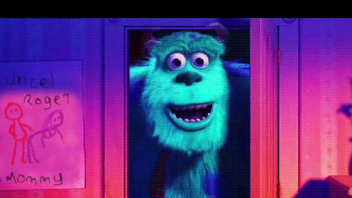 "Корпорация монстров". Когда Джеймс Саливан впервые попадает в дом к малышке Бо, на стене с этой дверью можно разглядеть невинный детский рисунок. Но такой ли он