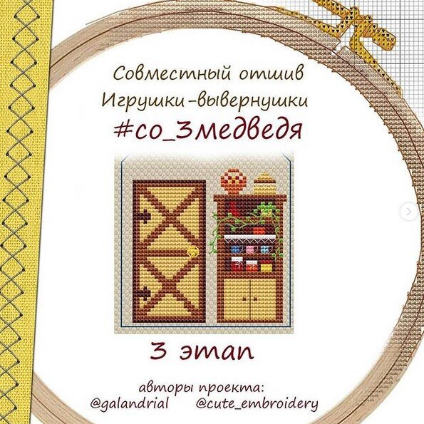Продолжаю делиться с вами отшивами игрушки-домика по мотивам сказки "Три медведя", который мы организовали вместе с дизанейром схем Татьяной Чайниковой! На этот раз участникам нужно было вышить прихожую, в которой располагается большой шкаф с заначками на зиму (варенья, мёд, собранные в лесу ягоды, цветочки и многое другое) и входная дверь.