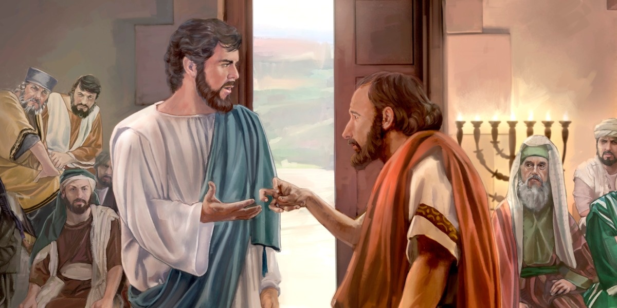 Слова Иисуса не оставили этих людей равнодушными. Вновь случай сталкивает Его с фарисеями, вызывая немедленную полемику.