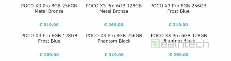 На европейский рынок Poco X3 Pro выйдет в двух модификациях 6/128 Гб и 8/256 Гб. За базовую версию предложат отдать 269 евро или $321, а за топовую предлагают заплатить 319 евро или $381. Напомним, что столько будет стоить аппарат на базе Snapdragon 860, с аккумулятором емкостью 5160 мАч с быстрой 33-ваттной зарядкой, AMOLED‑экраном с частотой обновления 120 Гц и тройной основной камерой с «ведущим» датчиком на 48 Мп.