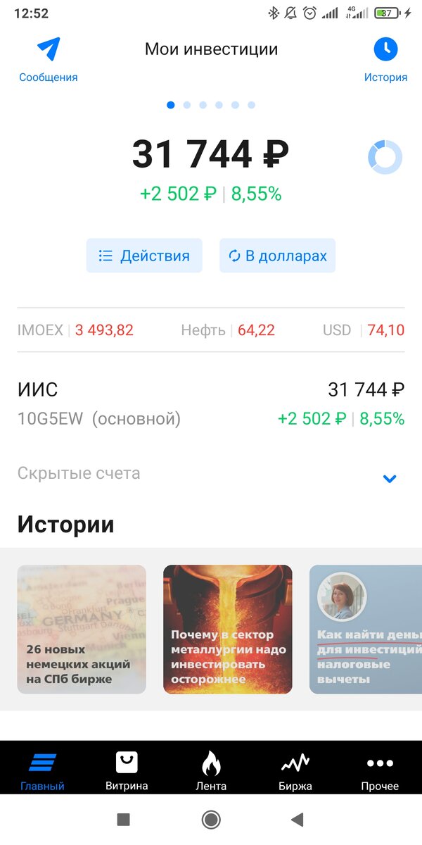 Общий результат моего портфель сейчас вылядит так.
