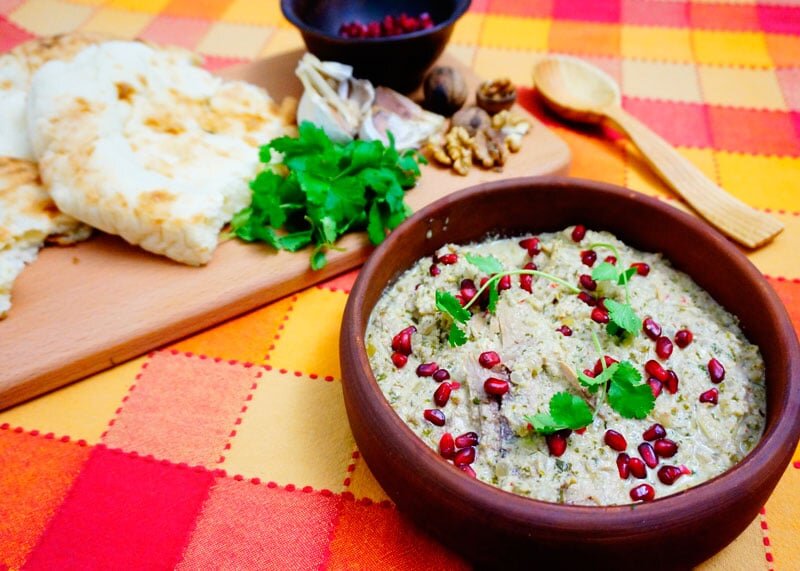 Сациви – хорошо известное большинству из вас блюдо грузинской кухни, которое в советские времена было включено в меню каждого ресторана (в буквальном понимании сказанного). У нас его также именуют иногда «курицей в соусе из грецких орехов», потому как традиционно сациви состоит из отварной или жареной птицы: чаще всего, это курица, но вполне может быть также индейка, утка или гусь. Более того,