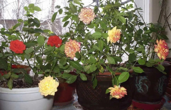 Чтобы приготовить питательную землю для роз, необходимо взять 4 части компоста и по одной части земли и песка. Если вы не можете всё это заготовить по отдельности, то розы можно посадить в готовый грунт, купленный в магазине. Чтобы ваши розы цвели и благоухали на вашем подоконнике, необходимо поливать их питательной смесью, и содержать на южной светлой стороне окон, подкормку и полив проводить раз в неделю.