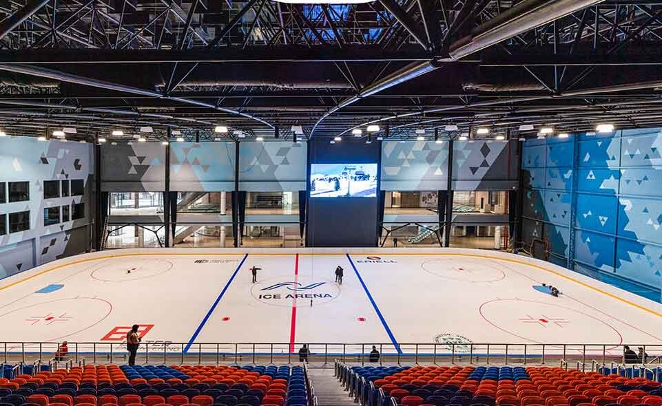 Проект реализован как полноценная ледовая арена, способная вместить до 2 тысяч зрителей, со всей необходимой инфраструктурой, позволяющей вести не только тренировочный процесс, но и проводить соревнования профессиональных хоккейных команд на высоком уровне.