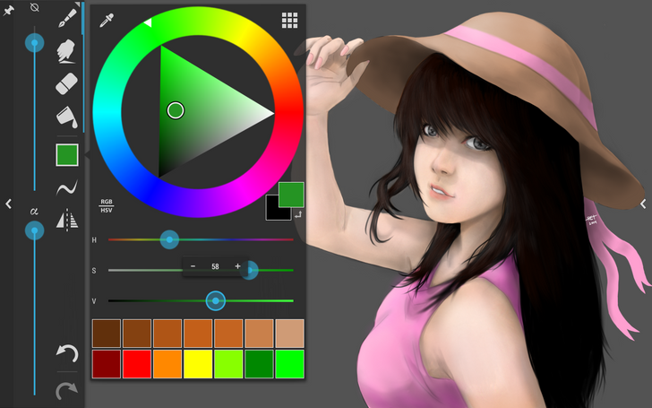 ArtFlow - одно из самых распространенных приложений для творчества, которое полюбилось современным художникам. Здесь имеется порядка 70 различных кистей, а также иных, не менее полезных инструментов для реализации вашей идеи.