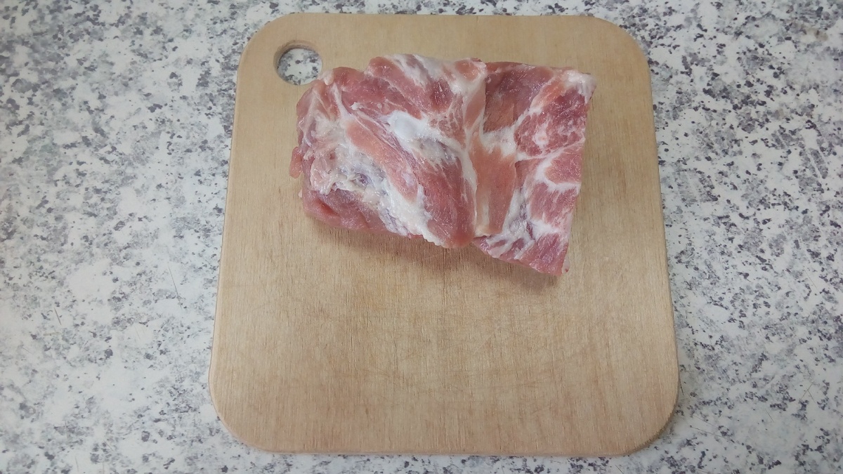 Жирную свинину (я взяла грудинку) режем на маленькие кусочки.