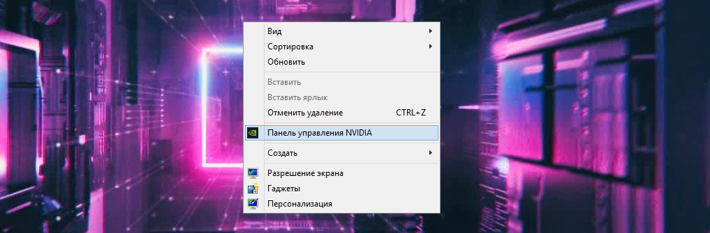 После установки кликаем по рабочему столу правой кнопки мыши и в меню выбираем Панель управления Nvidiа
