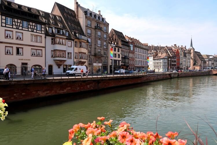 Весь центр – один сплошной восторг! Фахверковые домики, каналы с живописными мостиками, шпили церквей и море цветов. Начнем прогулку с набережной реки Илль.