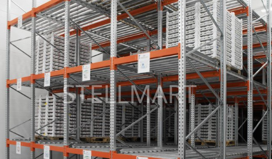 Данный тип стеллажей обычно используют для хранения большого объёма товаров при высоком складском обороте в химической, косметической, фармацевтической и пищевой промышленности.