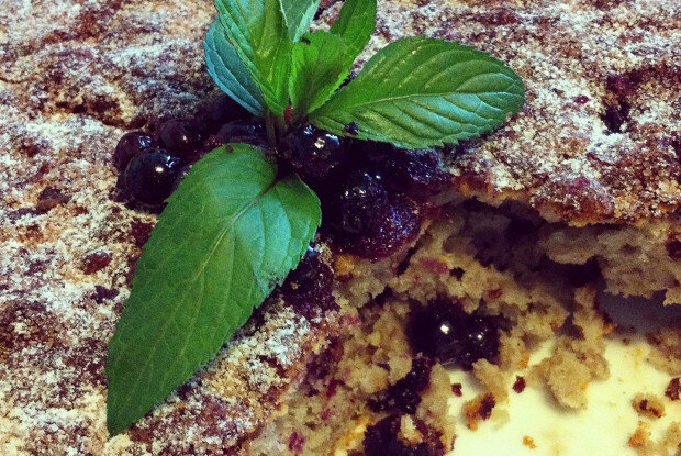 1. Смешайте хлопья, муку, разрыхлитель и ягоды черной смородины.