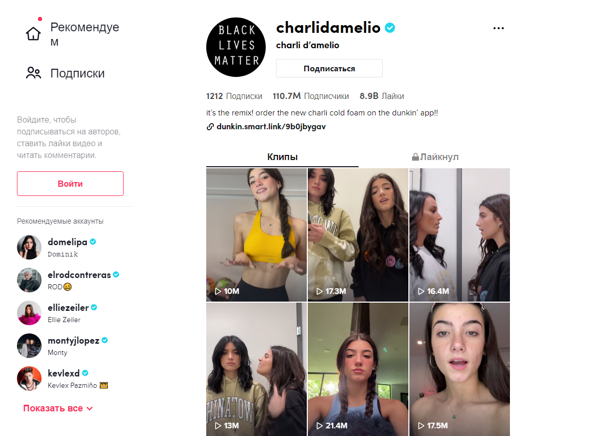 Пятнадцатилетняя Чарли обосновалась на первом месте в рейтинге самых популярных тиктокеров мира. Её аккаунт насчитывает более 78 миллионов
