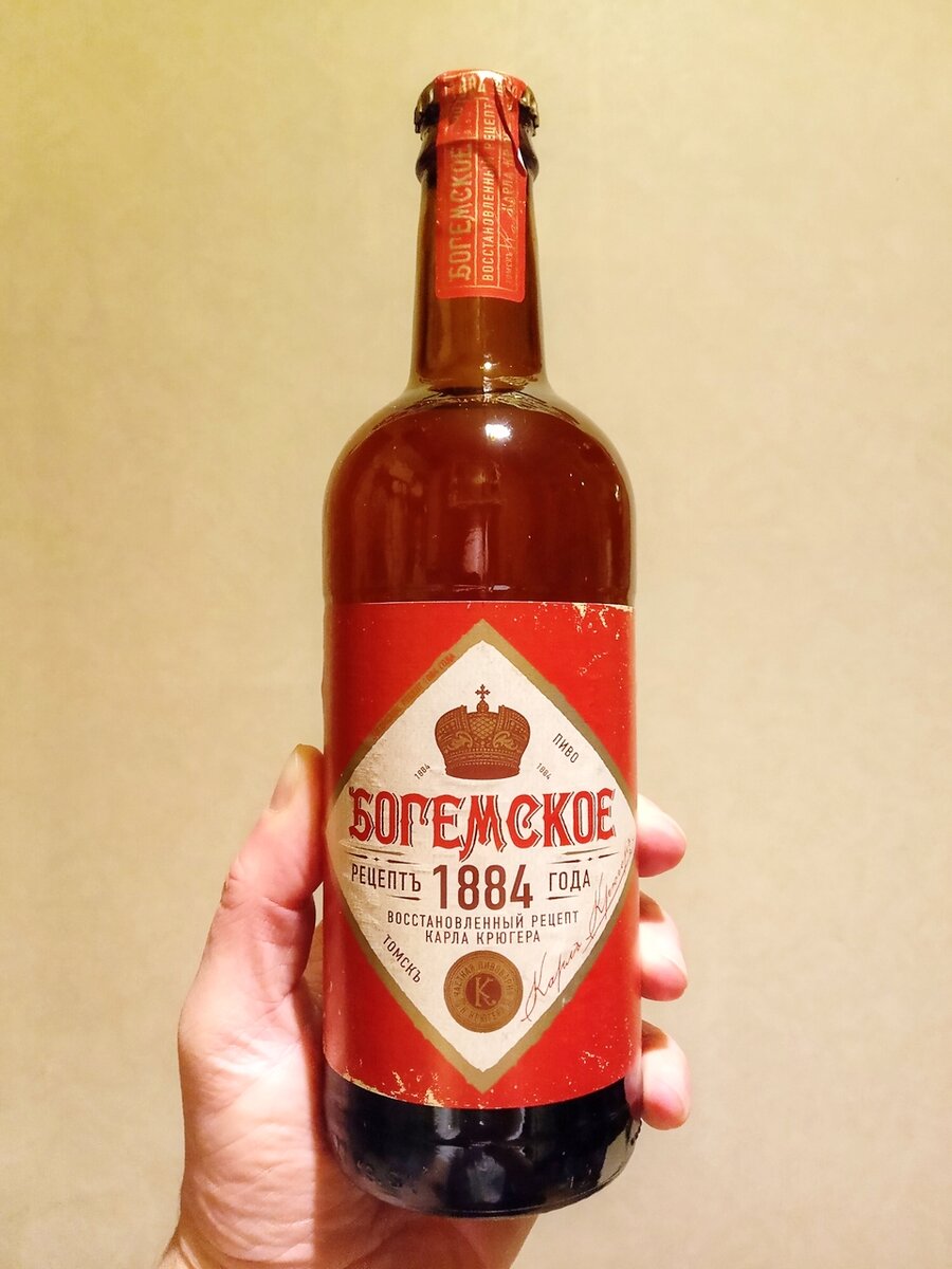 Вот такое интересное пиво попалось мне на днях в одной из наших районных сетевых разливаек. Естественно, что мне стало любопытно попробовать, какое пиво варили в России без малого полтора века назад, так что, понятное дело, купил на пробу. Долго пытался выбрать бутылку с наименее потертой этикеткой, пока не заметил, что у всех этикеток потертости абсолютно одинаковые. Приглядевшись, понял, что это элемент дизайна, а не последствия транспортировки. Пиво производится компанией "Томское пиво" якобы по восстановленному рецепту Карла Крюгера (это основатель данного предприятия, собственно, первоначально оно так и называлось - завод Карла Крюгера) от 1884 года (год открытия пивзавода). Посмотрим, что пишут по поводу этого пива на сайте пивоварни: Это элегантное, ароматное пиво, темно - янтарного цвета. Благодаря использованию нескольких видов солода пиво обладает насыщенным вкусом и чистым сладковатым послевкусием. На вкус пиво мягкое, но при этом с выраженной травянистой хмелевой ноткой, ко