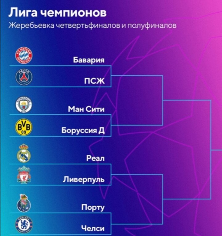 • Полуфинал верхней половины таблицы – максимально интригует. Там может случиться и противостояние бывшей и нынешней команд Пепа («Ман Сити» против «Баварии»), и нефтяное дерби («Ман Сити» против «ПСЖ»), и повторение немецкого финала ЛЧ-2012/13 («Бавария» против «Боруссии»)