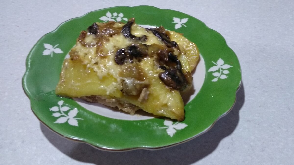 Картошку и мясо выкладываю рядами так чтобы каждый кусочек