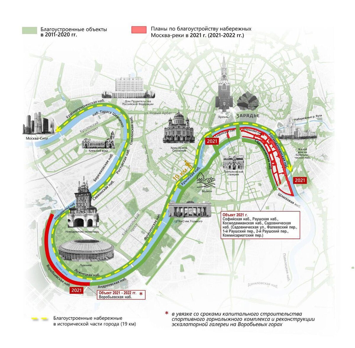 Там высадят деревья и кустарники, разобьют газоны и цветники, а также обновят Софийскую, Раушскую, Садовническую и Космодамианскую набережные и примыкающие к ним улицы.